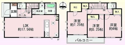 間取り 3LDK 土地面積 90.40 ㎡ / 27.35 坪