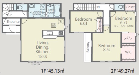 間取り 3LDK(+WIC) 土地面積 150.87 ㎡ / 45.64 坪